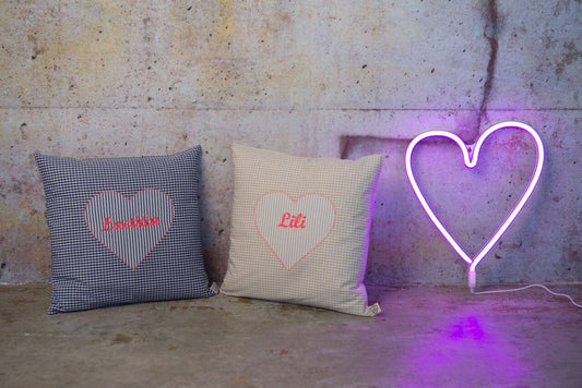Kissen personalisiert VICHY beige - ⚡NEON pink 💕Herz