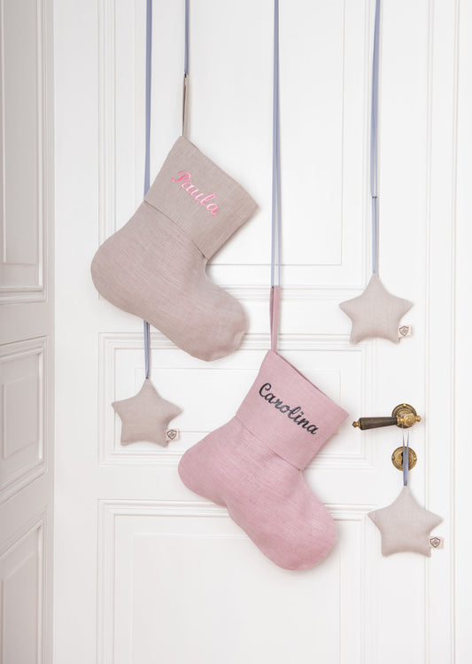 Nikolausstrumpf personalisiert LEINEN hellgrau